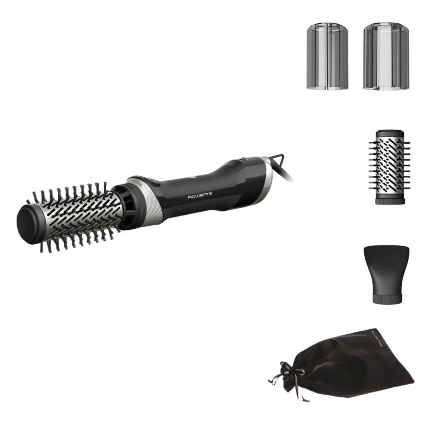 Въртящата се четка е оборудвана с две сменяеми четки (40 мм и 50 мм), идеални за всяка дължина на косата, както и с концентратор на въздух за по-голям контрол върху стилизирането. Мощността от 1000 W осигурява бързо и ефикасно сушене, без да се нарушава здравето на косата.