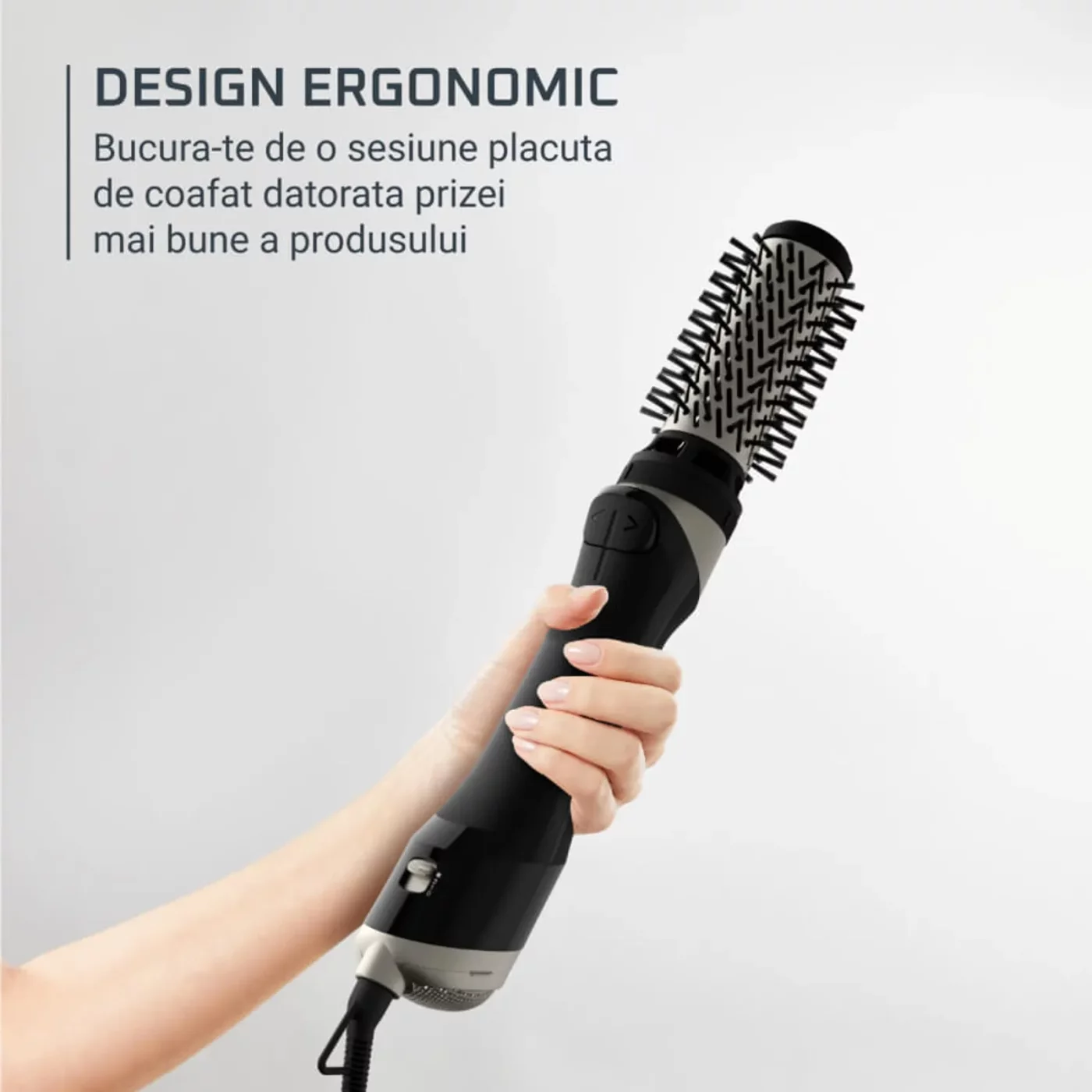 Ергономичният дизайн предлага максимален комфорт при употреба, а усъвършенстваната технология спомага за пестене на енергия с до 40%, в сравнение с използването на класически сешоар с четка.