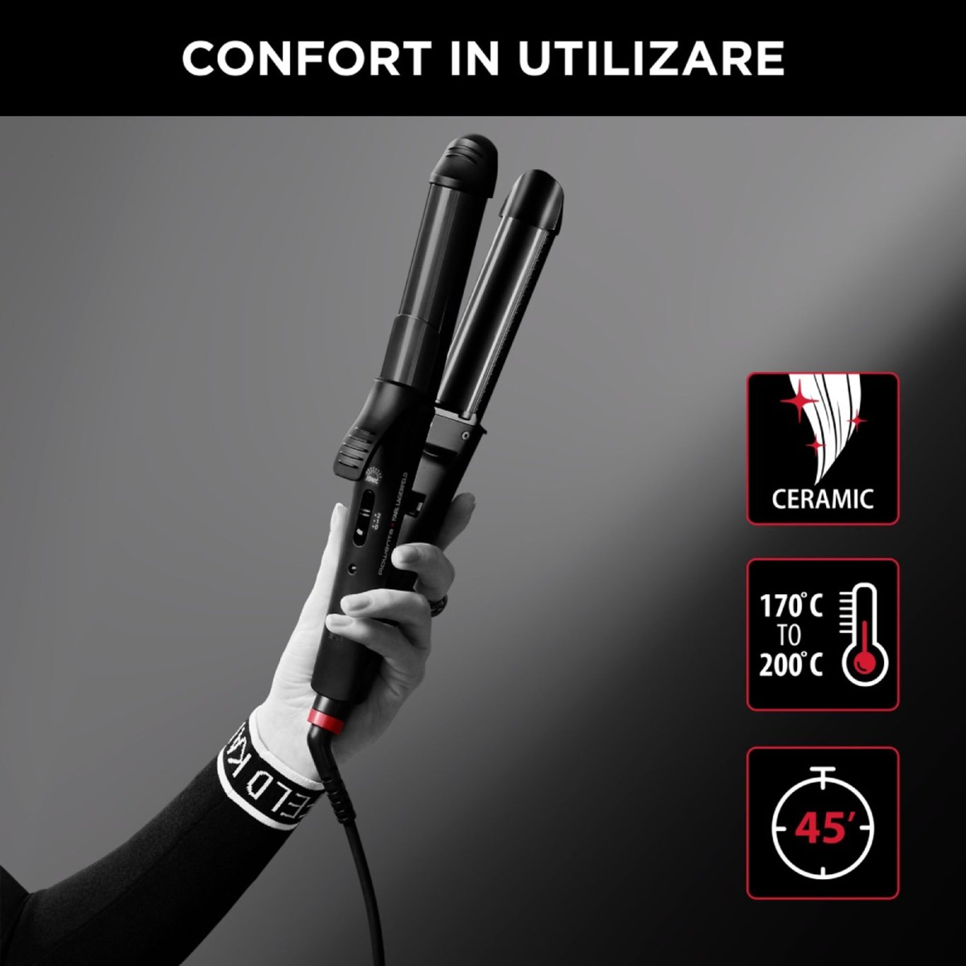 Маша за коса Rowenta x Karl Lagerfeld Curls Forever CF311LF0, покритие Keratin&Shine, 10 мм, 180° C