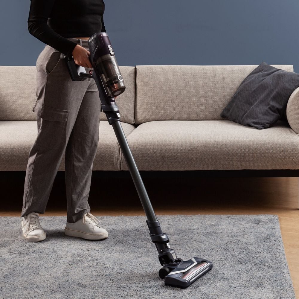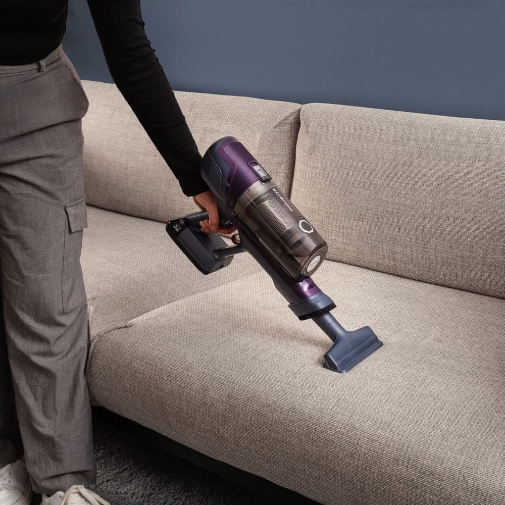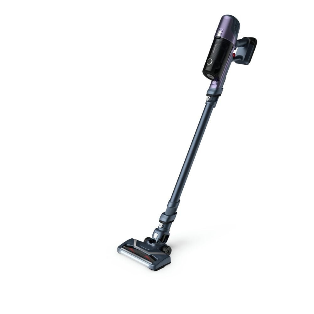 Интелигентната функция Stop & Go ви предлага допълнителен комфорт: тръбата и четката остават самостоятелно във вертикално положение, когато отделите ръчната прахосмукачка, за да почистите високи повърхности. Сменяемата 18V батерия осигурява щедра автономност до 45 минути, а основната четка с LED осветление ви помага да откриете скрития прах под мебелите. Поддръжката е минимална, тъй като контейнерът за прах се изпразва и почиства изключително лесно.