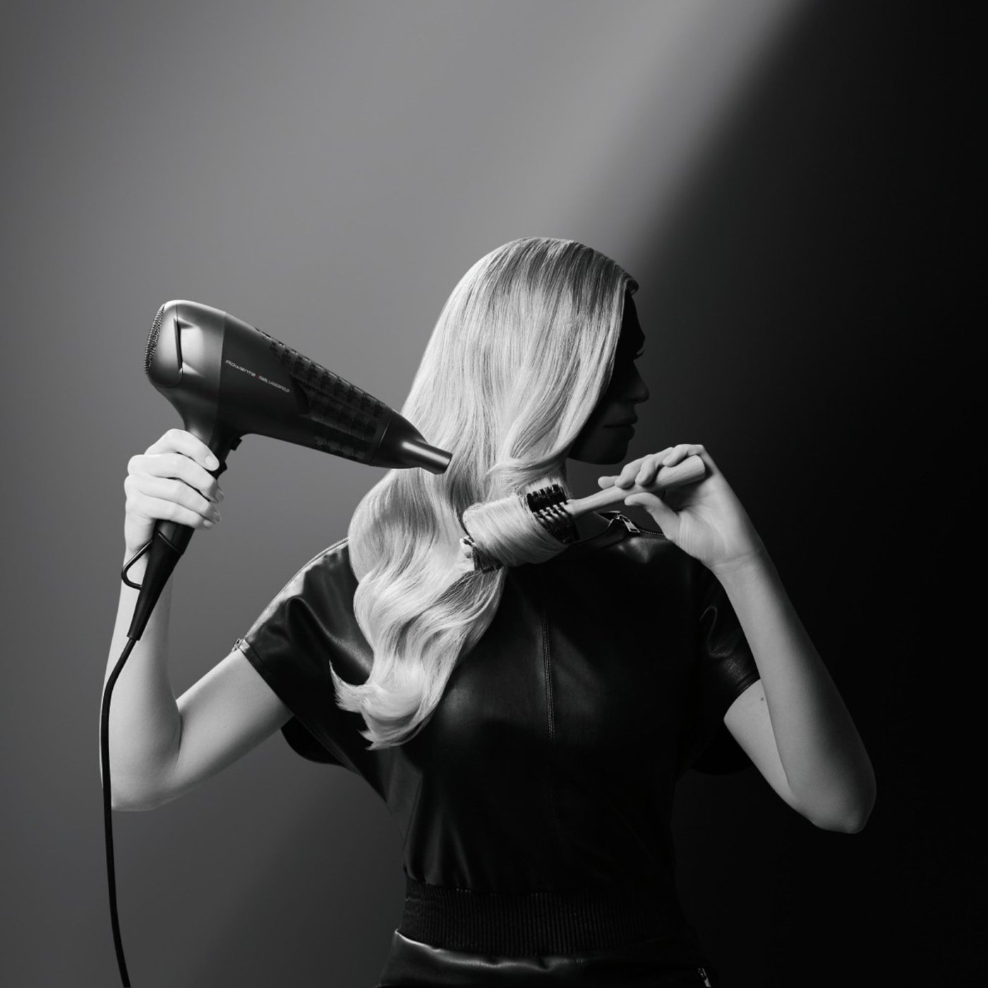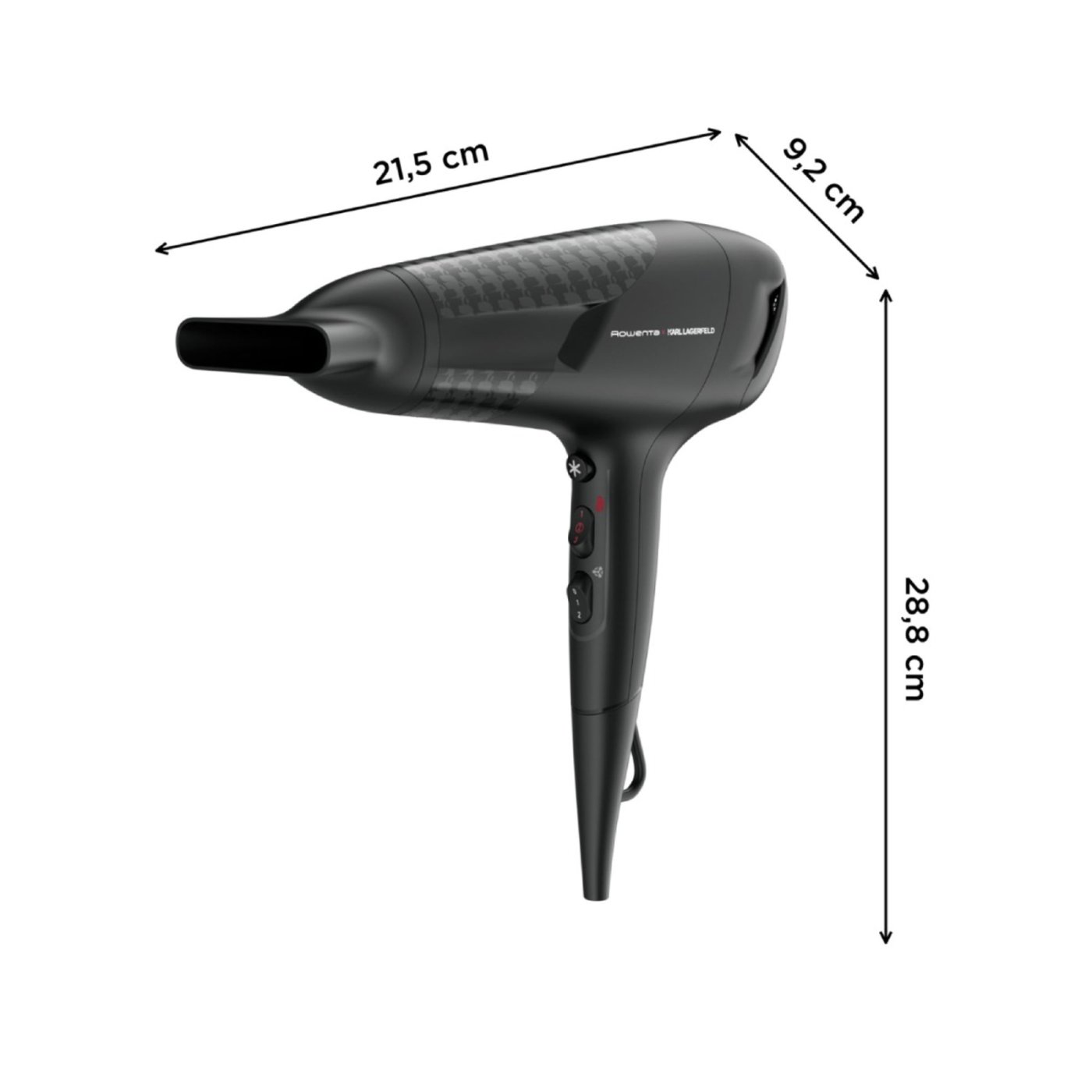 С 1,8-метров захранващ кабел и ергономичен дизайн, Rowenta Studio Dry x Karl Lagerfeld предлага повишен комфорт и свобода на движение, което я прави перфектният избор за ефикасно, елегантно и безопасно стилизиране, директно у дома.