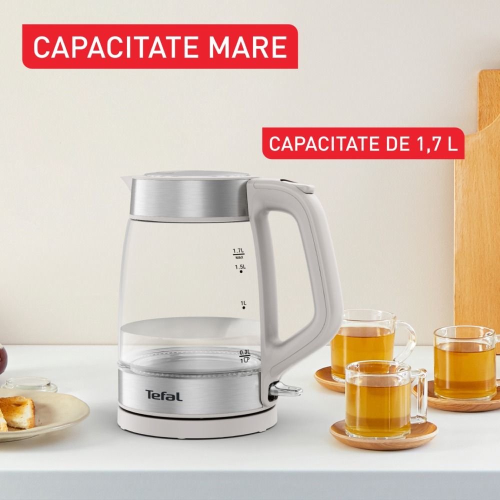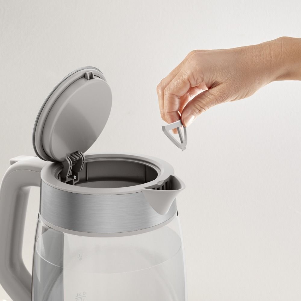 Потребителското изживяване е подобрено от синьото амбиентно осветление , което се активира по време на работа, предлагайки високотехнологичен и изискан вид. Капацитетът от 1,7 литра е идеален за цялото семейство или за онези моменти, когато имате гости. Каната е оборудвана с подвижен филтър против котлен камък , който гарантира чиста вода и предотвратява отлагания, като е много лесна за поддръжка.