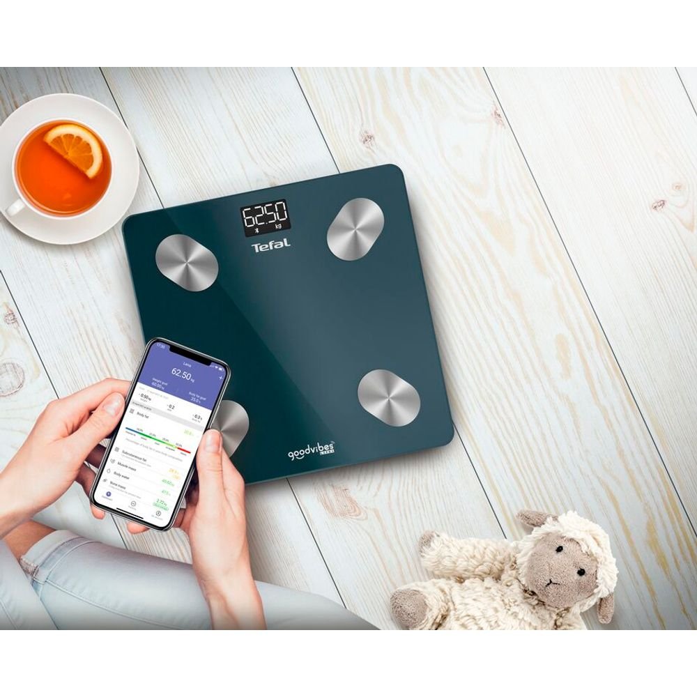 Открийте новата интелигентна везна Tefal Goodvibes Life+ BM9620S1, вашият идеален партньор за здравословен начин на живот. За разлика от стандартните модели, тя поддържа максимално тегло до 180 кг и ви предлага подробен анализ на телесния ви състав чрез 10 основни показателя: тегло, ИТМ, телесни мазнини, мускулна маса, костна маса, процент вода, висцерални мазнини, базален метаболизъм (BMR), метаболитна възраст и подкожни мазнини.