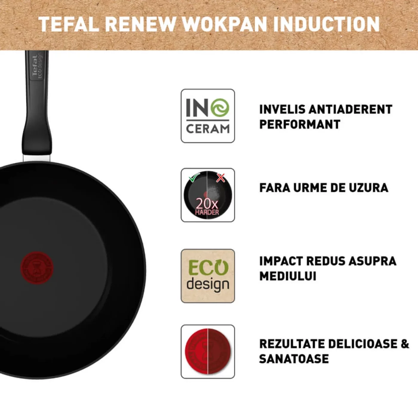 Трансформирайте кулинарното си изживяване с уок тиган Tefal Renew 28 см, изработен от 100% рециклиран алуминий. Насладете се на изключително устойчивото на надраскване керамично покритие, индикатора Thermo-Signal за идеална температура и солидното дъно, съвместимо с индукция. Екологично проектиран продукт, идеален за здравословно готвене всеки ден.
