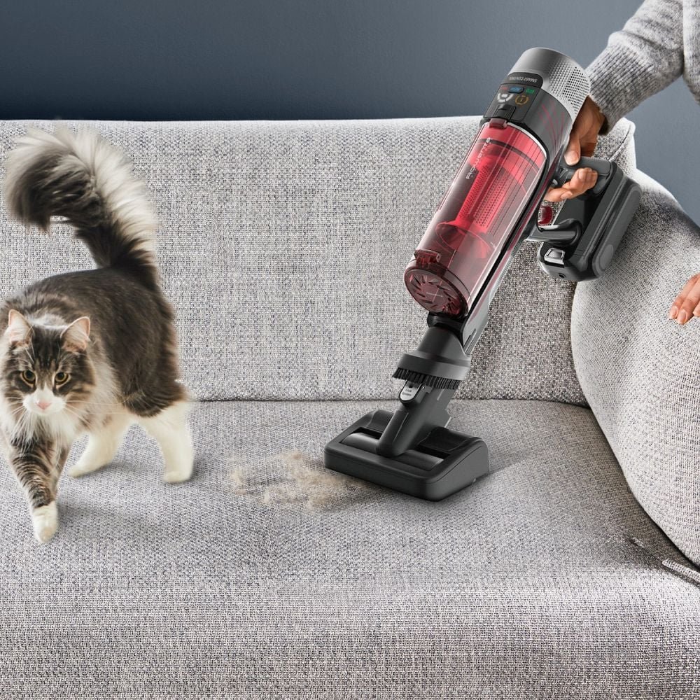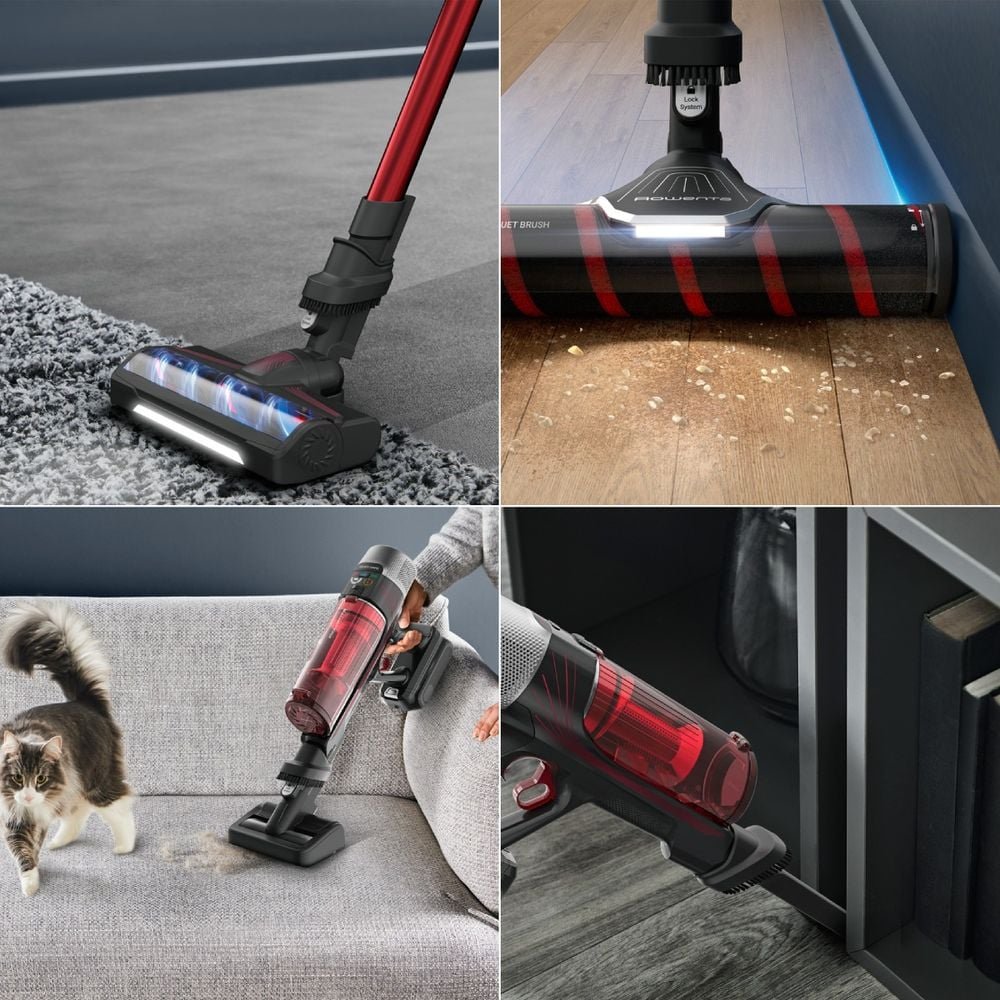Ексклузивната технология Flex ви позволява да достигнете до 4 пъти по-далеч под ниски мебели, без да се навеждате, докато основната четка, оборудвана с LED осветление, ви насочва в тъмни ъгли. Интелигентният екран Smart Control показва нивото на батерията в реално време и ви предупреждава, когато филтърът се нуждае от почистване. Пълният пакет включва две моторизирани четки (за твърди подове и килими) и турбочетката Animal, идеална за премахване на животински косми от текстил и дивани. С 99,9% филтрираща система, която улавя фини частици и алергени, Rowenta X-Force Flex 9.60 осигурява пълна хигиена и лесно боравене в целия дом.