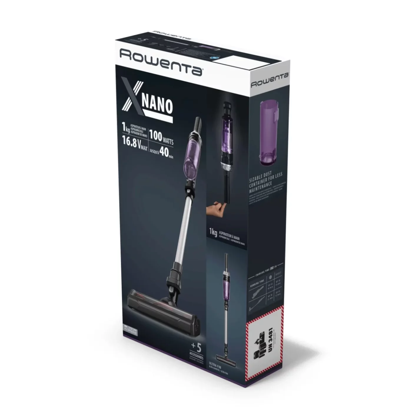 Rowenta X-Nano RH1129WO Вертикална прахосмукачка, 100W, 40 мин. време на работа, 1,75 кг, 2-в-1 технология, Черно-лилаво