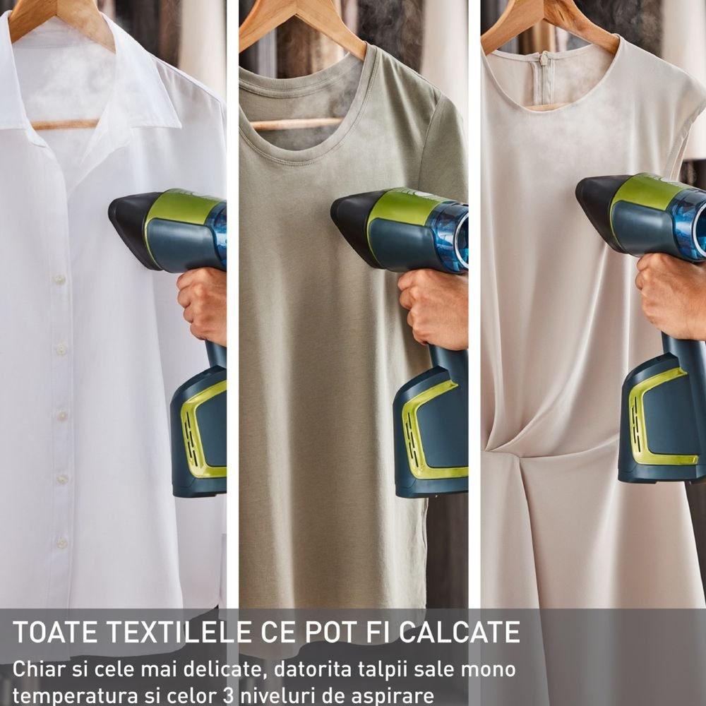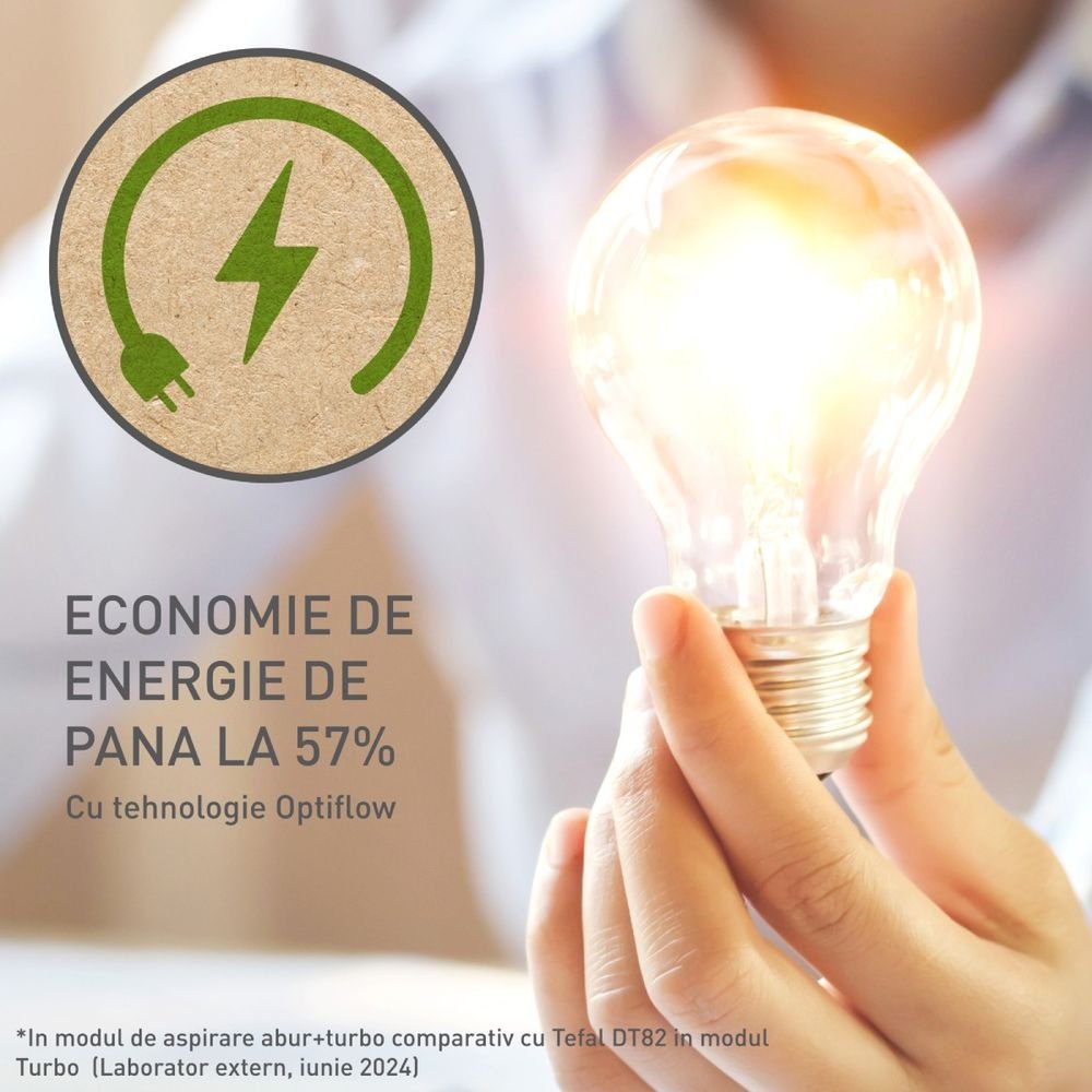 Открийте иновацията в грижата за дрехите с Tefal AeroSteam DT9810F0 – първият преносим уред за вертикално гладене, който предлага резултати, сравними с тези на класическа ютия. Благодарение на патентованата технология OptiFlow, уредът използва функция за засмукване на 3 нива (Пара, Леко засмукване, Турбо засмукване), която фиксира тъканта върху нагрятата плоча, позволявайки перфектно изглаждане с едно движение.