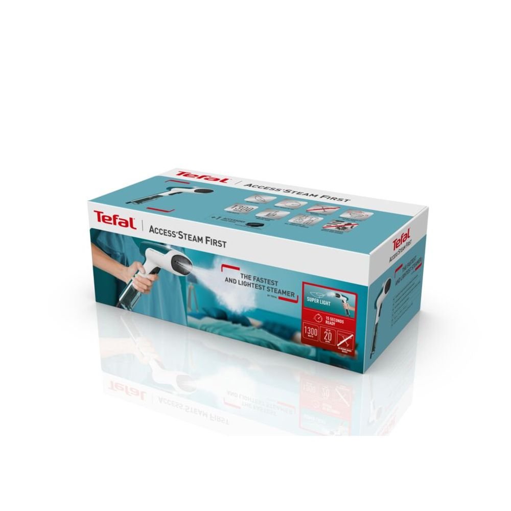 TEFAL ACCESS STEAM FIRST DT6131E0 УРЕД ЗА ВЕРТИКАЛНО ГЛАДЕНЕ С ПАРА 1300W 20G/MIN ЗАГРЯВАНЕ 15 СЕК БЯЛ/ТЮРКОАЗ