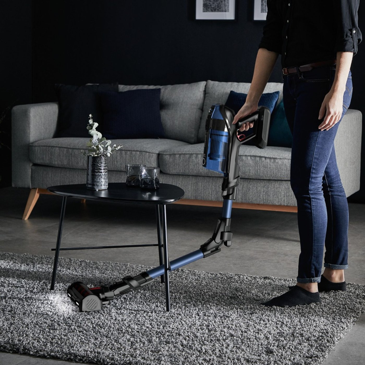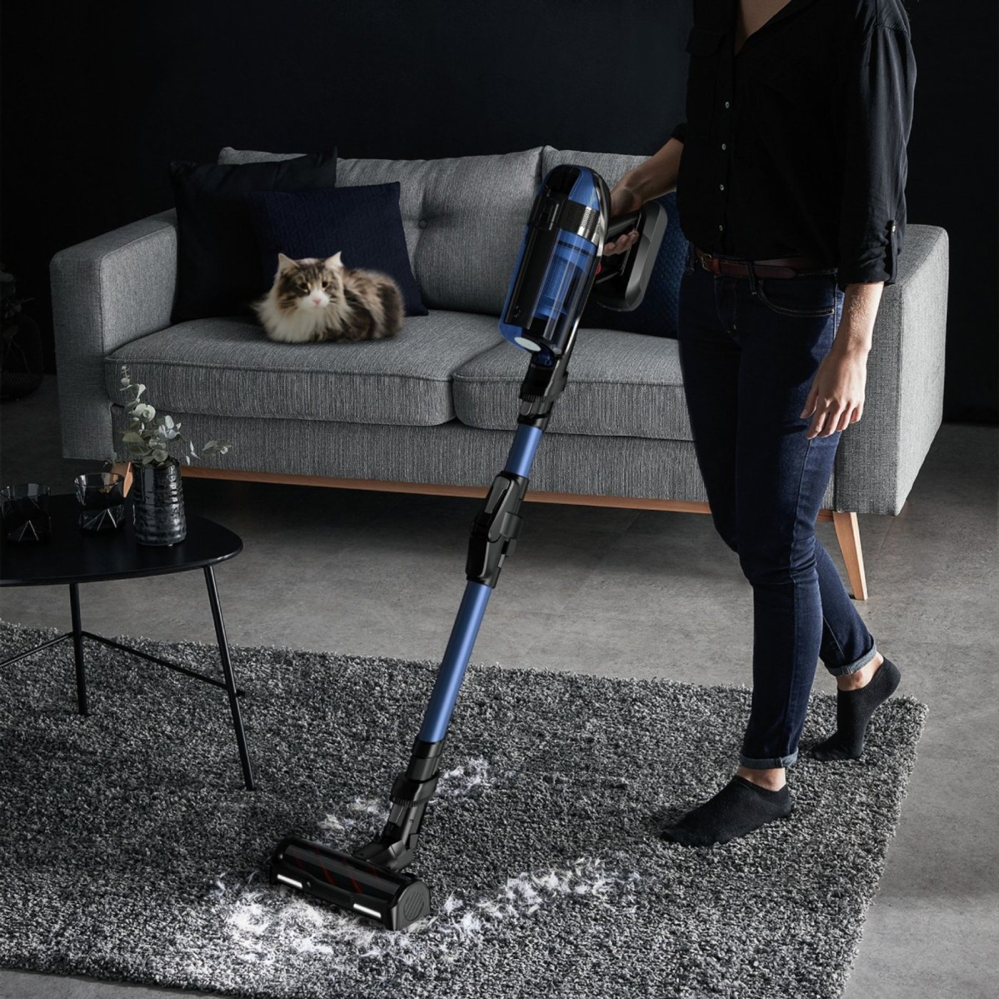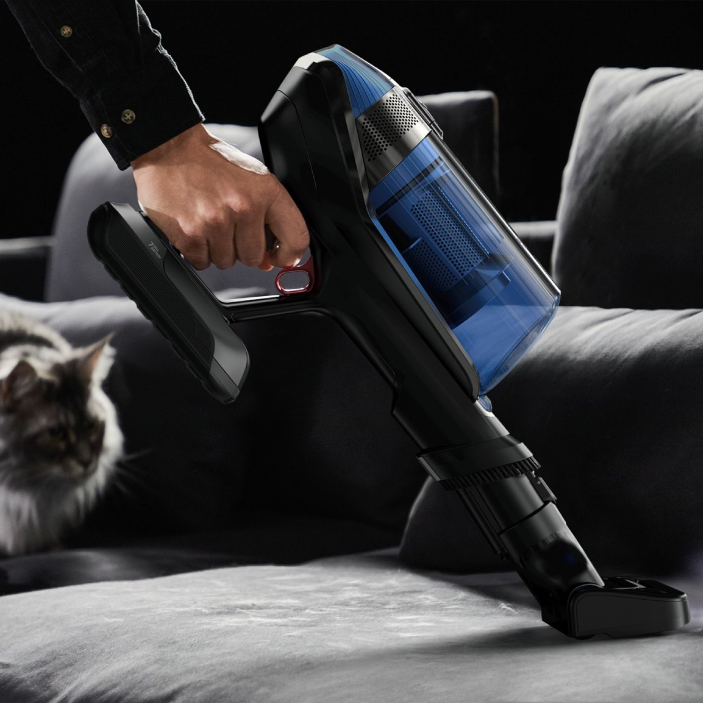 Гъвкавият дизайн и технологията Flex позволяват лесен достъп под мебели и в труднодостъпни пространства, а филтрацията до 99,9% улавя фини частици и алергени, което го прави подходящ за хора с алергии. Големият контейнер от 0,9 л намалява честотата на изпразване, а панелът Smart Control Display показва нивото на батерията и режима на работа за интуитивно управление.