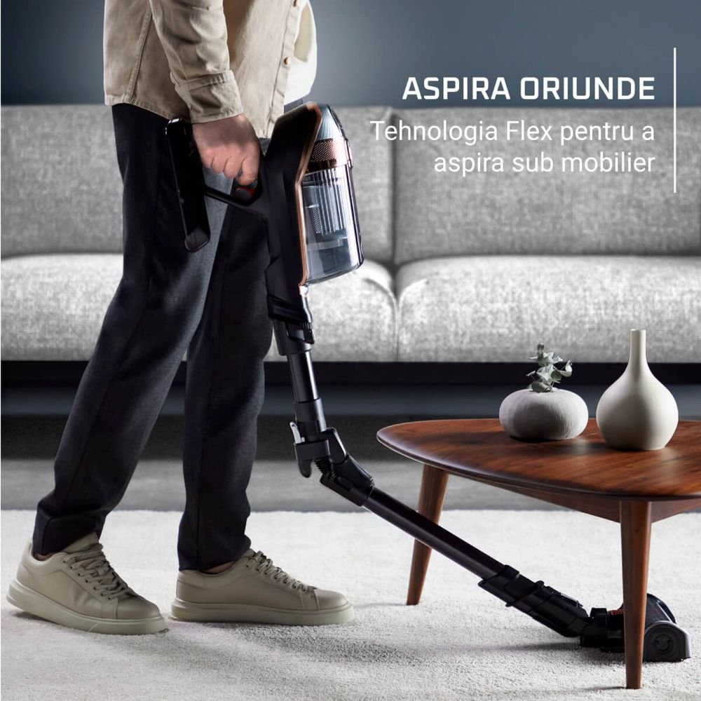 Оборудвана с технология Flex, прахосмукачката ви позволява да достигнете 4 пъти по-далеч под ниски мебели, без да се навеждате, докато LED осветителната система на основната четка разкрива всякакви следи от прах. Екранът Smart Control показва оставащата автономия в реално време (в минути или проценти) и ви предупреждава, когато филтърът се нуждае от почистване. Пакетът Animal Care включва четката Mini Animal Turbo, идеална за премахване на косми от домашни любимци от дивани, текстил и интериор на автомобили. С щедър контейнер за прах от 0,9 л и 99,9% филтрация, тази прахосмукачка осигурява превъзходна хигиена за цялото семейство.