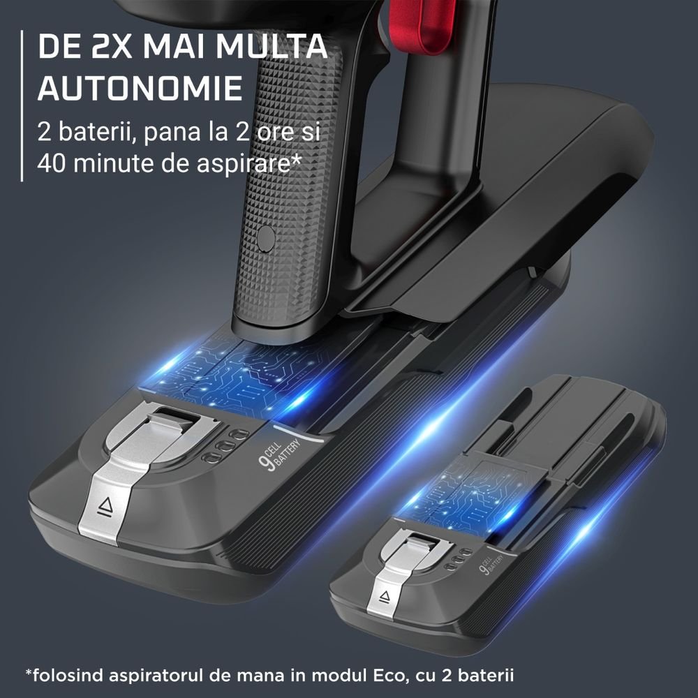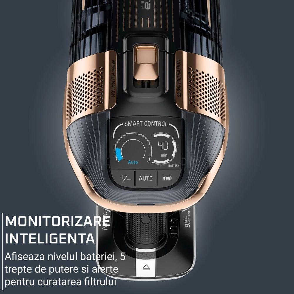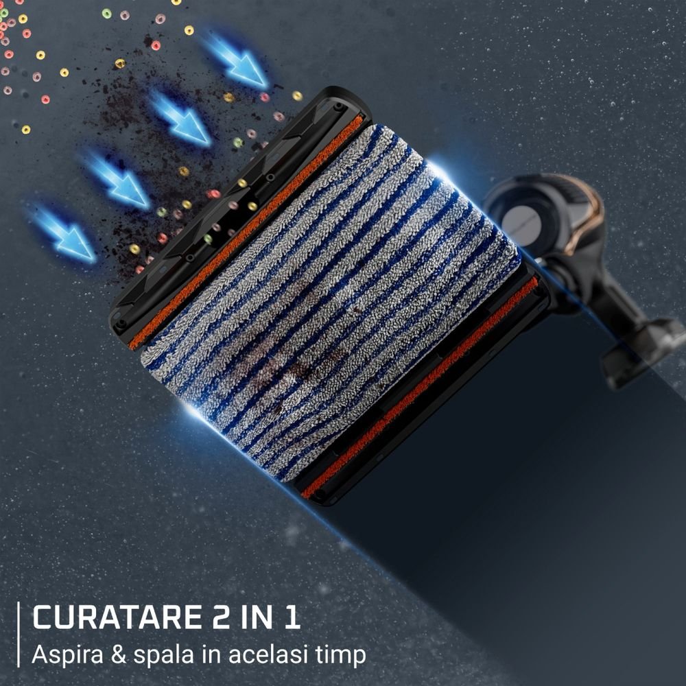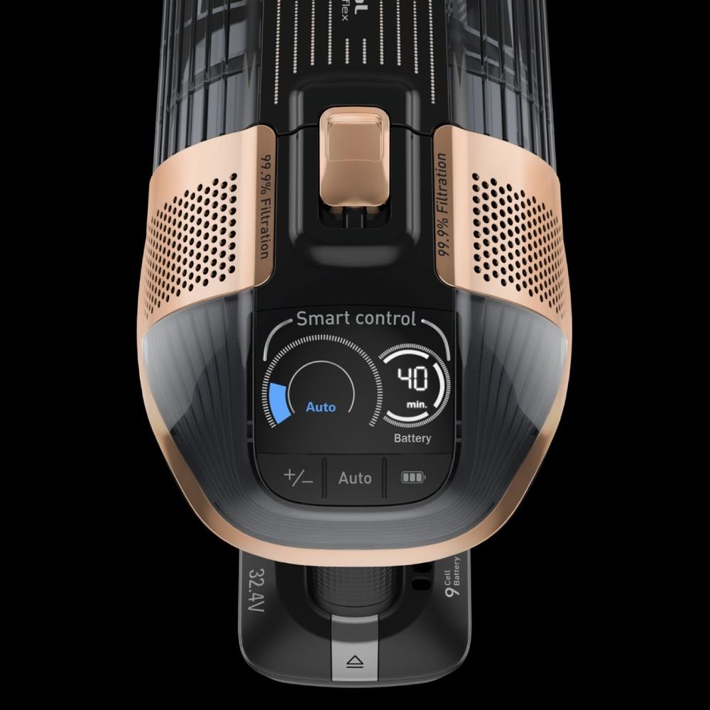 Акцентът на този модел е главата Aqua, която ви позволява едновременно да почиствате с прахосмукачка и моп, намалявайки наполовина времето, отделено за почистване. Технологията Flex ви позволява да достигнете под ниски мебели, без да се навеждате, а LED осветителната система на основната четка прави видими всякакви следи от прах. Екранът Smart Control показва оставащата автономия минута по минута и ви уведомява, когато филтърът се нуждае от поддръжка. Пакетът Animal Care, който включва четката Mini Animal Turbo, е идеален за собственици на домашни любимци, като бързо премахва косми от текстил и тапицерия. С щедър контейнер за прах от 0,9 л и 99,9% филтрация, Rowenta X-Force Flex 15.60 Aqua осигурява превъзходна хигиена с едно движение.