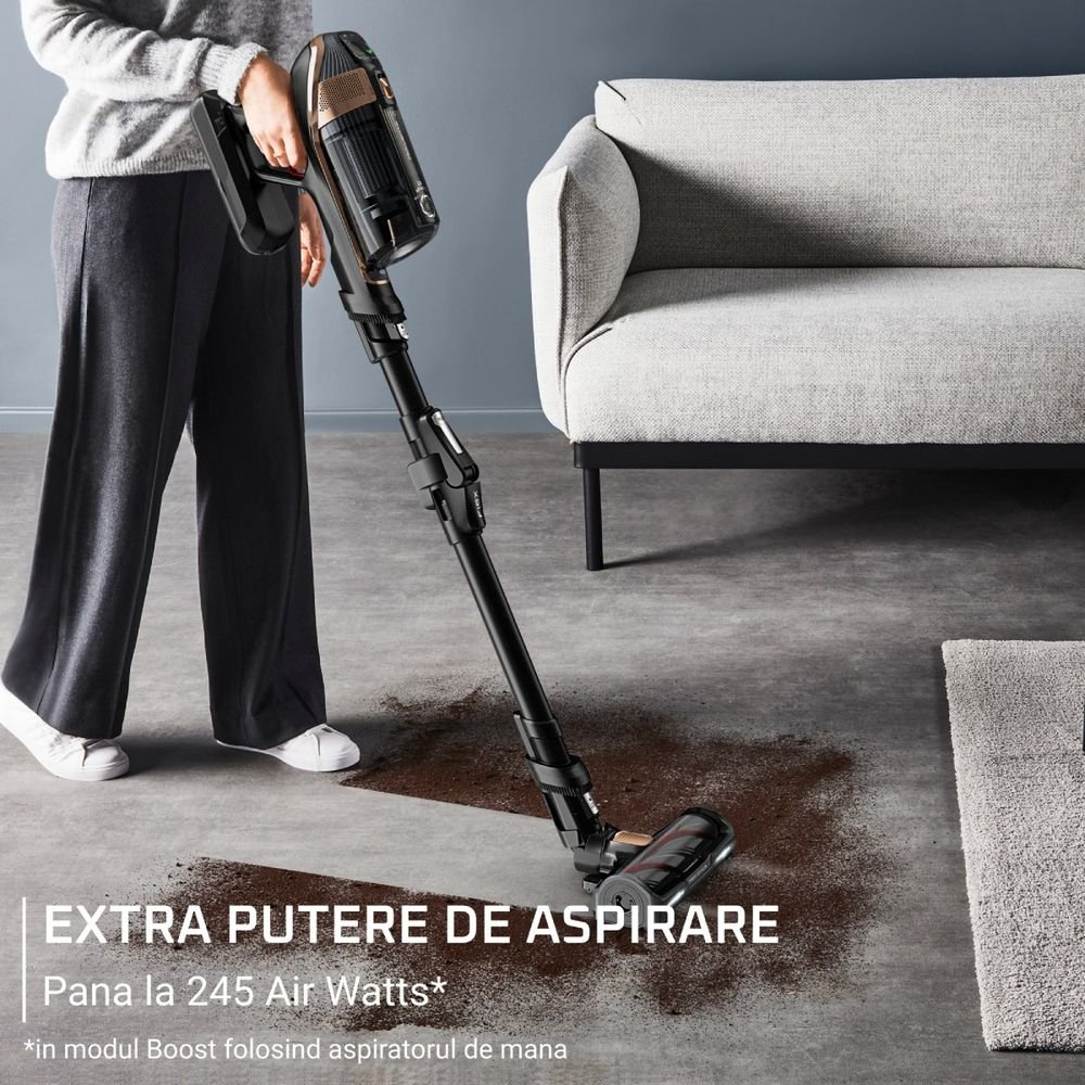 Революционизирайте почистването на дома си с Rowenta X-Force Flex 15.60 Aqua RH99G3WO, безжичната вертикална прахосмукачка, която съчетава изключителна мощност с максимална гъвкавост. Този усъвършенстван модел предлага всмукателна мощност до 245 Air Watts и впечатляваща автономност до 160 минути (2 часа и 40 минути с двете включени батерии в еко режим), което го прави цялостно решение за просторни домове. Най-новото поколение интелигентна технология автоматично регулира всмукателната мощност в зависимост от вида на пода, осигурявайки ефективно и оптимално почистване.