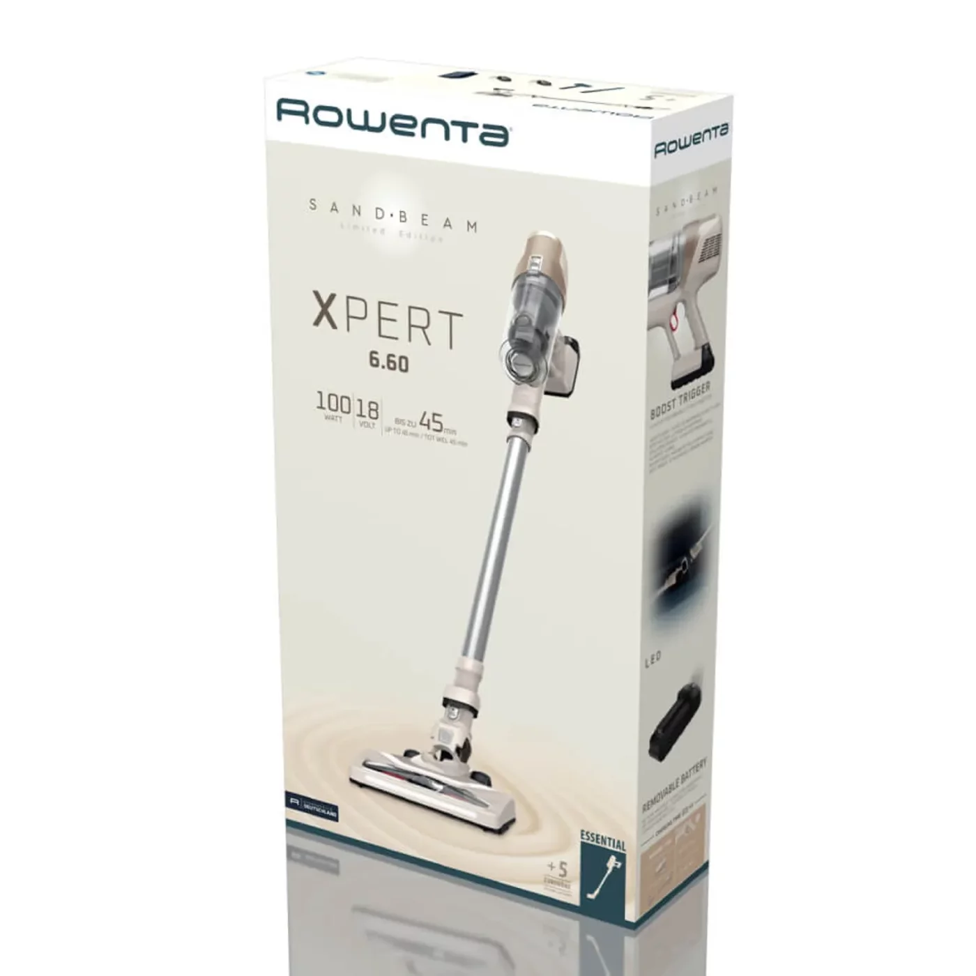 Rowenta X-Pert 6.60 Essential RH6830WO Вертикална прахосмукачка, 100W, 18V, 45 мин. време на работа, LED, Сребристо-Слонова кост
