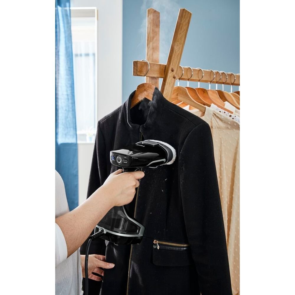 Новата технология на нагряващата се плоча гарантира премахване на гънките само с едно движение и предотвратява конденза, така че дрехите да могат да се носят веднага след гладене. Уредът загрява само за 25 секунди, което го прави идеален за ежедневна употреба. Освен функцията за гладене, той е отличен инструмент за дезинфекция, елиминиращ до 99.99% от вирусите, бактериите и микробите само чрез естествената сила на парата. Включената микрофибърна четка е перфектна за почистване на прах и замърсявания от палта, дивани или матраци, предлагайки цялостно решение за свежест във вашия дом.