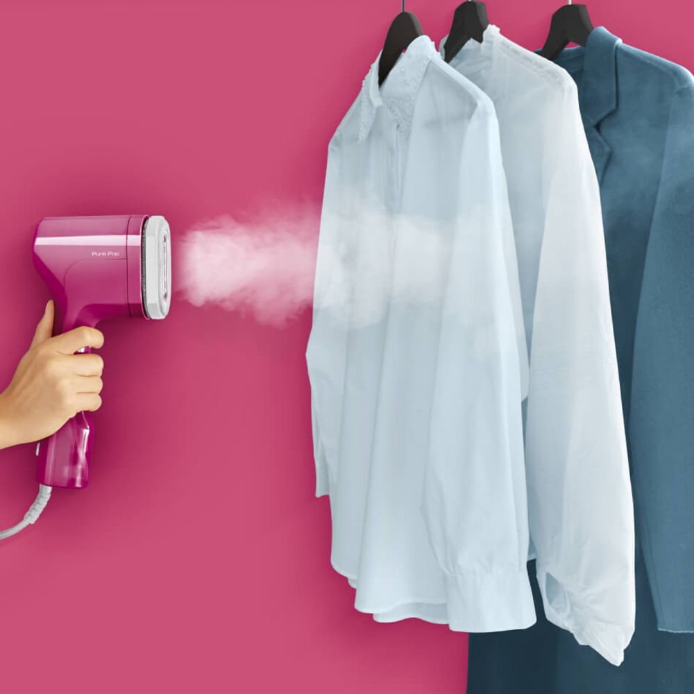 TEFAL PURE POP DT2023F0 УРЕД ЗА ВЕРТИКАЛНО ГЛАДЕНЕ С ПАРА 1300W ДВУСТРАННА ПРИСТАВКА 15 СЕК ЗАГРЯВАНЕ 70ML РОЗОВ