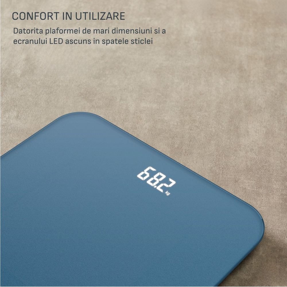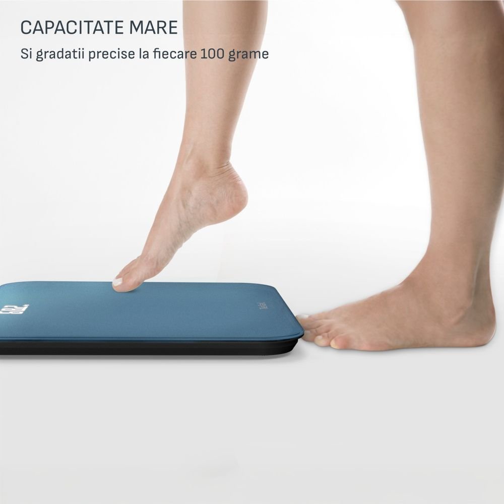 Везната е оборудвана с интелигентни функции за автоматично включване и изключване: просто трябва да стъпите на платформата, за да се покаже теглото, и устройството ще се изключи само след няколко секунди бездействие. С прецизно градуиране от 100 g, тя ви позволява да следите отблизо напредъка си. Компактните размери и тънкият профил правят тази везна лесна за съхранение, а стъклената ѝ повърхност е изключително лесна за почистване. Комплектът включва литиева батерия CR2032, така че можете да я използвате веднага.