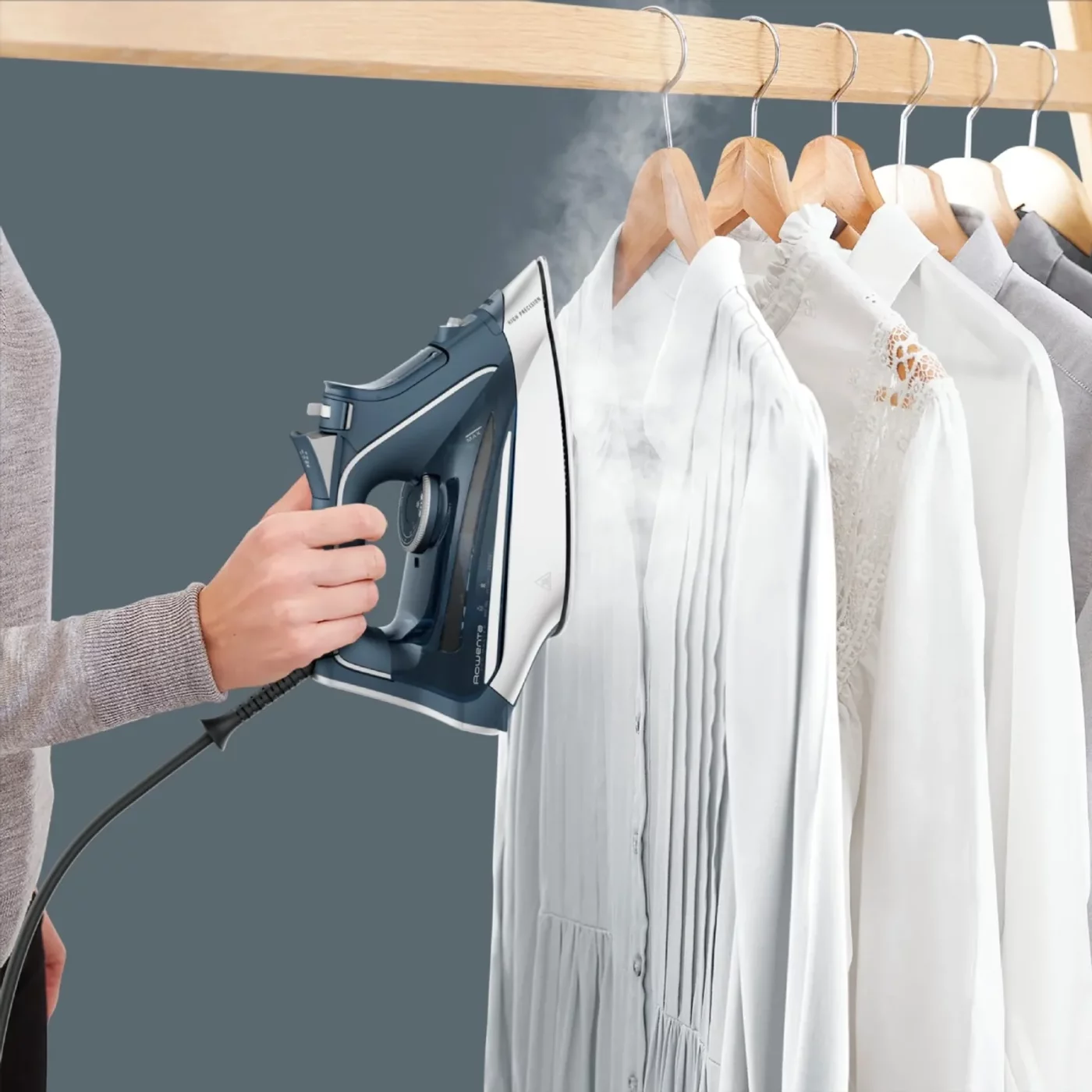 Открийте парната ютия Rowenta Pro Master DW8221D1, идеалното решение за постигане на професионални резултати директно у дома. С впечатляващата мощност от 2800 W и мощна парна струя от 200 г/мин, тази ютия бързо и ефикасно изглажда дори най-упоритите гънки. Иновативната гладеща повърхност Microsteam 400 HD Laser, заедно с променлива пара до 50 г/мин, осигурява оптимално разпределение на парата и отлична устойчивост на надраскване за лесно плъзгане. Устройството се отличава с детайли благодарение на високопрецизния профилиран връх и функцията Autosteam. Здравият му дизайн включва голям резервоар от 310 мл, система против прокапване, която предпазва тъканите от петна, и опция за вертикално гладене, идеална за освежаване на завеси и дрехи на закачалки.