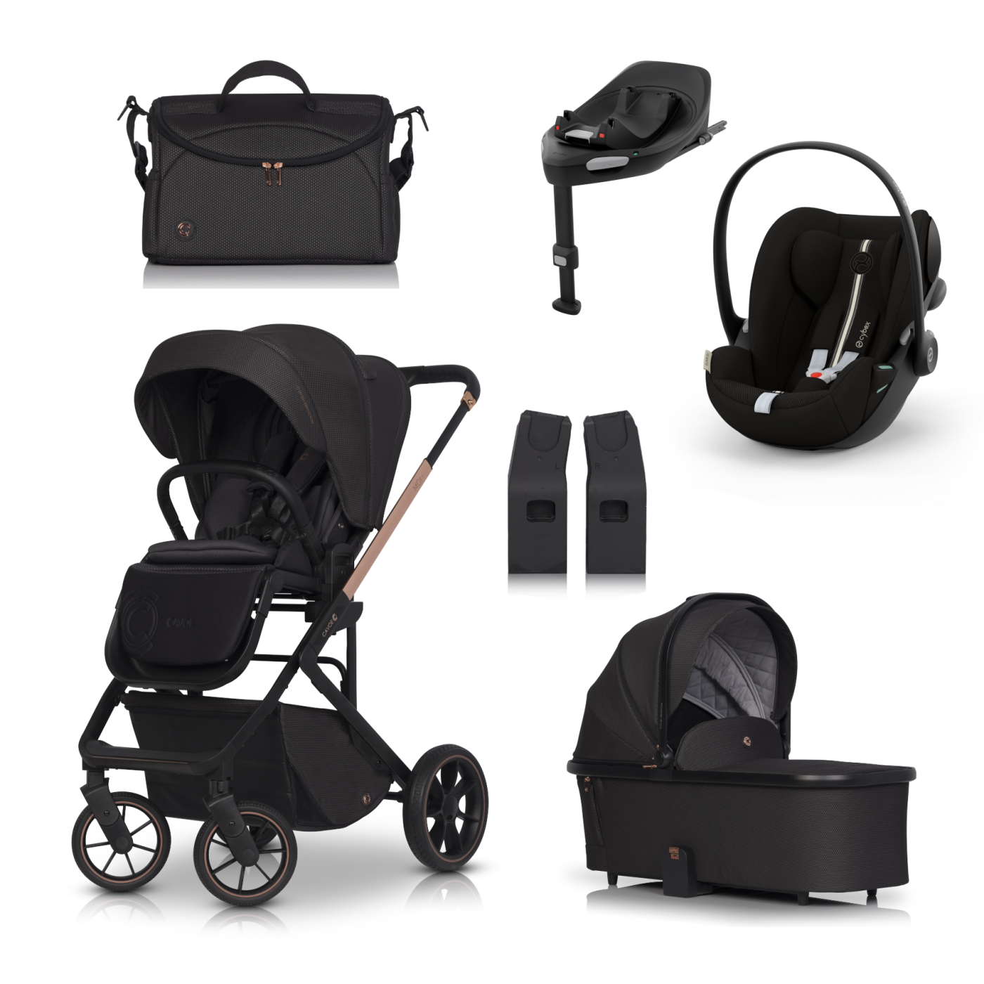 Детска количка 4 в 1 Cavoe Moi+, със столче за кола Britax Romer Baby Safe PRO, Vario база и аксесоари