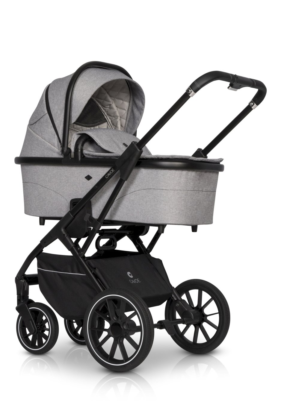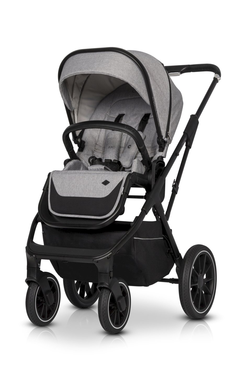 Axo Comfort от CAVOE е част от система за пътуване 3 в 1 - можете да прикрепите коша за новородено и столчето за кола към рамката на количката (столчето за кола може да се прикрепи с помощта на адаптери, които се закупуват отделно).
