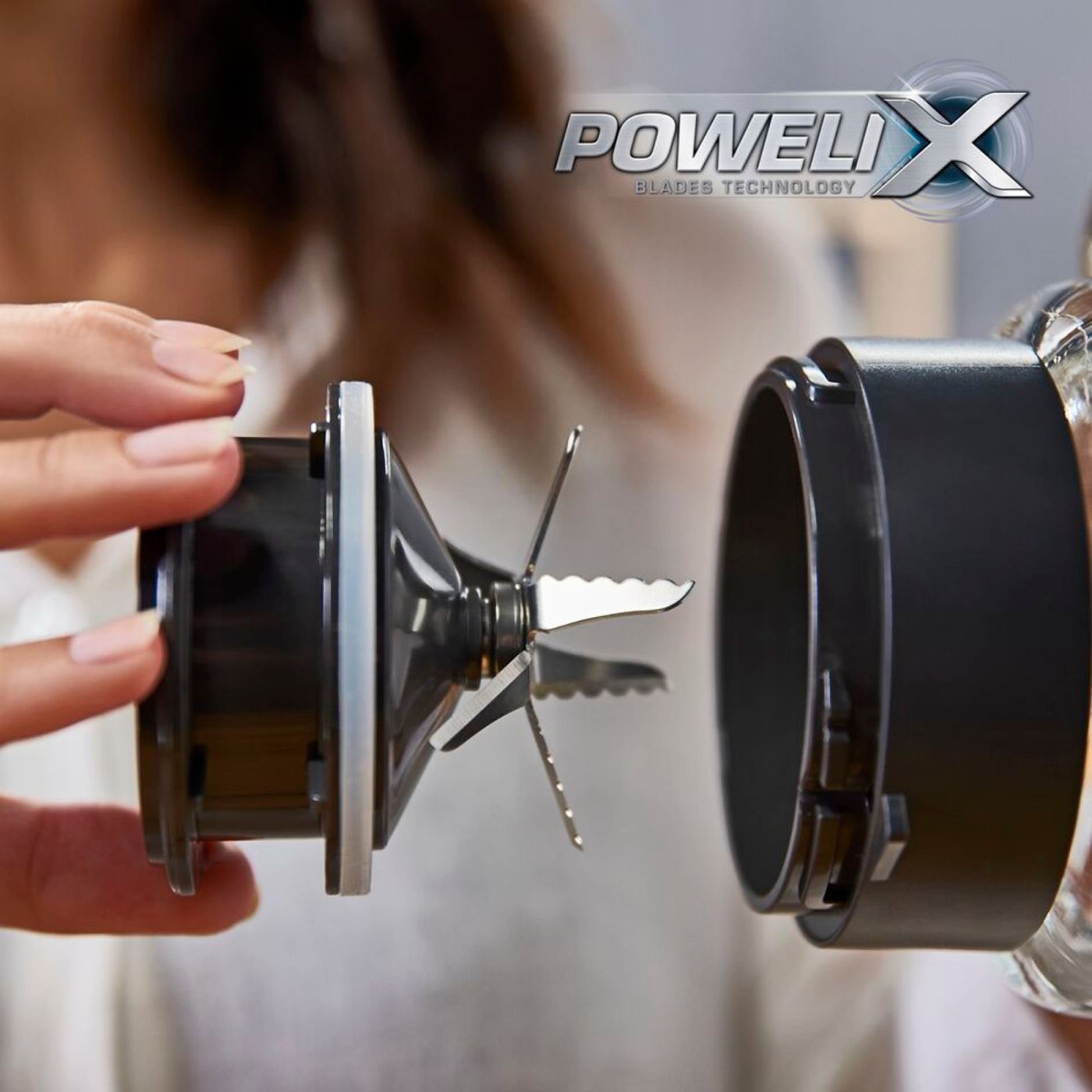 Блендерът Tefal Perfectmix+ BL811D38 е проектиран за максимална производителност, предлагайки бързо и равномерно смесване за всякакъв вид съставка. Благодарение на революционната технология Powelix, която комбинира 6 остриета от неръждаема стомана с 3 допълващи се действия, вашите ястия са готови до 30% по-бързо, без да остават парченца в контейнера.