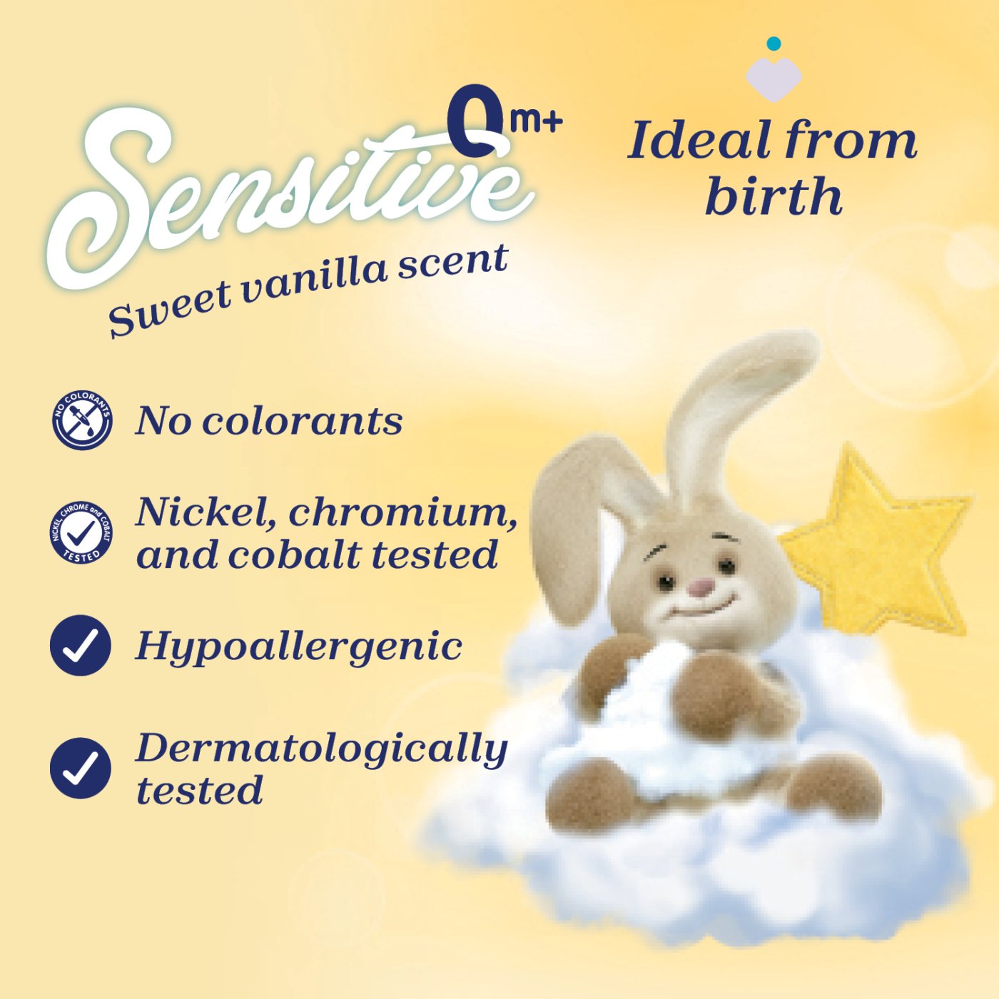 Дерматологично тестван, подходящ за чувствителна детска кожа;