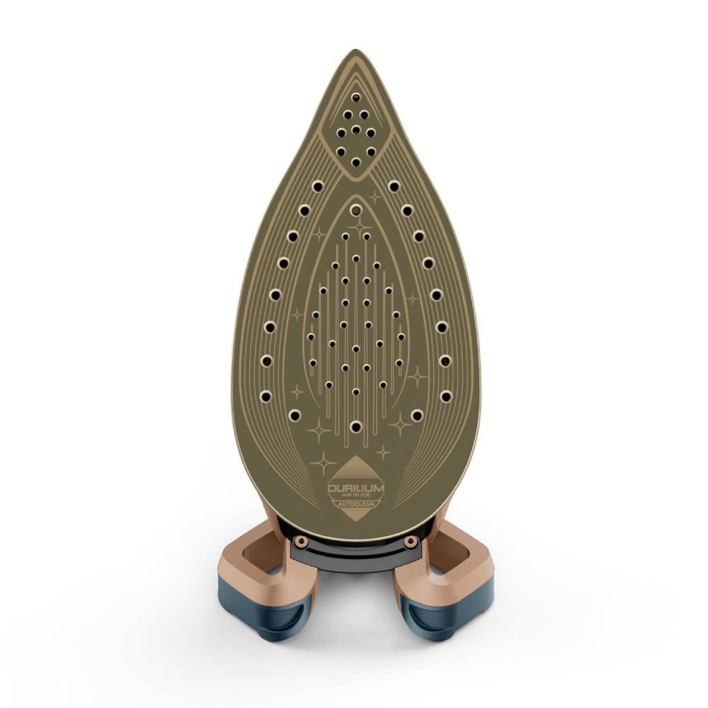 Гладещата повърхност Durilium AirGlide Autoclean гарантира най-добро плъзгане, а подвижният колектор против варовик осигурява дълготрайна работа. Станцията има подвижен резервоар от 1,2 литра , функция за дезинфекция, която елиминира бактериите, и система против прокапване за дрехи без петна.