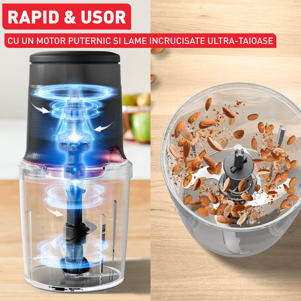 Технология Powelix за бързи резултати. Оборудван с 4 високопроизводителни ножа Powelix , чопърът осигурява хомогенно и бързо нарязване. 4-те ножа работят едновременно, за да обработват съставките за рекордно време, което е идеално както за фини текстури, така и за по-едро нарязване.