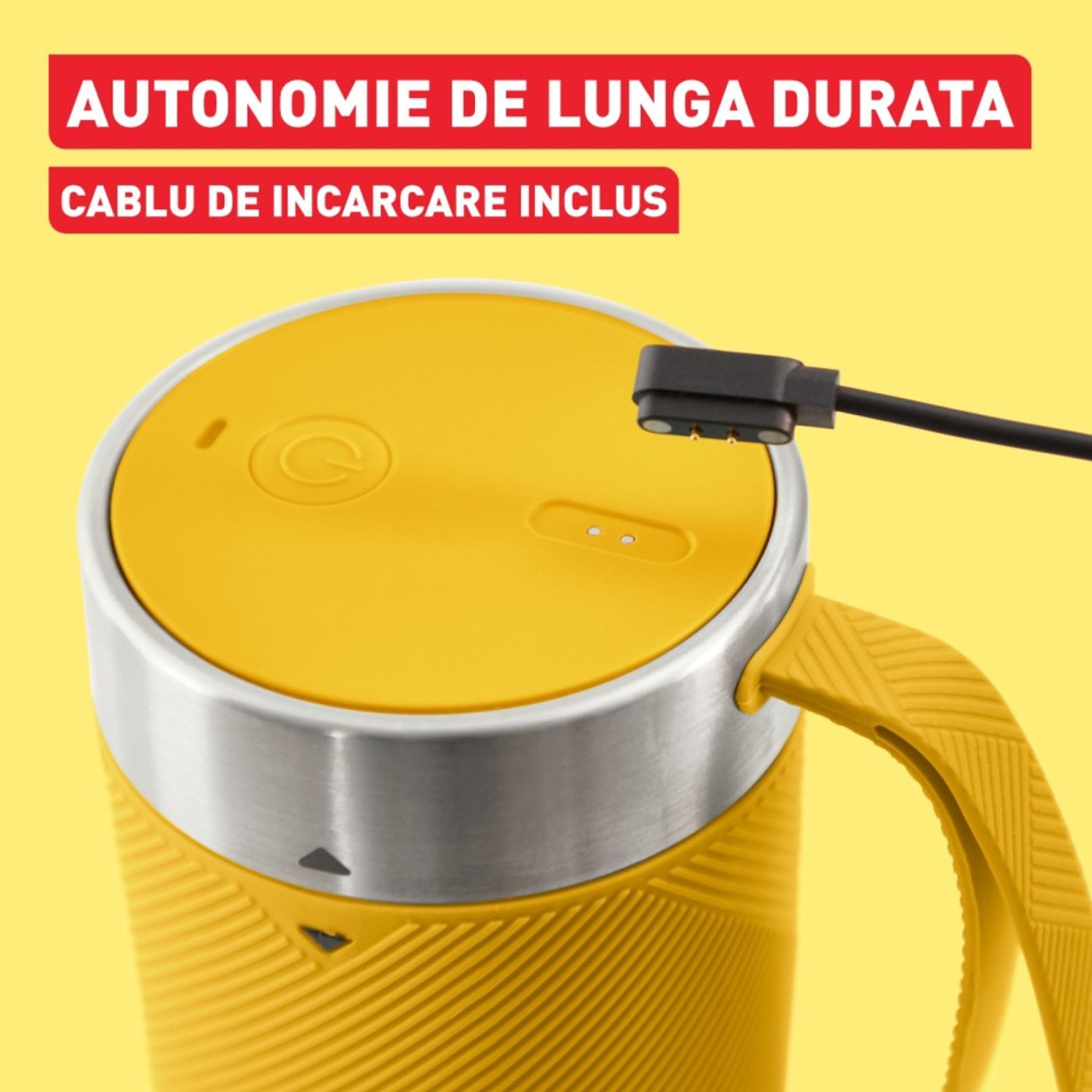 Благодарение на литиево-йонната батерия с капацитет 1200 mAh, блендерът предлага отлична автономност до 11 цикъла на смесване с едно зареждане, което го прави идеален за ежедневна употреба. Зареждането е лесно и безопасно, като се използва включения магнитен кабел. Употребата е интуитивна: добавете съставките, натиснете бутона за захранване два пъти и блендерът автоматично спира след завършване на цикъла.