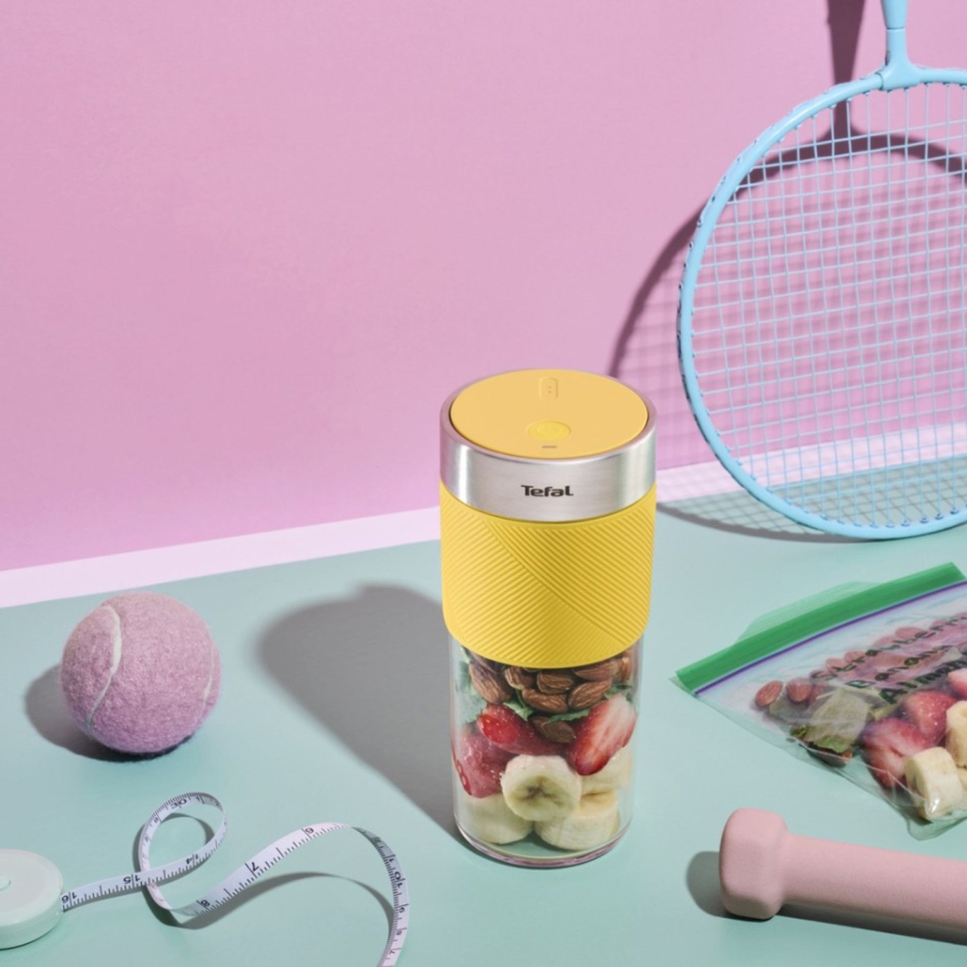 Насладете се на здравословен начин на живот без компромиси с преносимия блендер TEFAL LightMix, идеалното решение за смутита, шейкове и свежи напитки, където и да сте. Компактен, лек и тих, този блендер е проектиран да ви придружава всеки ден у дома, в офиса, във фитнеса или в движение, давайки ви свободата да смесвате и консумирате директно от контейнера.