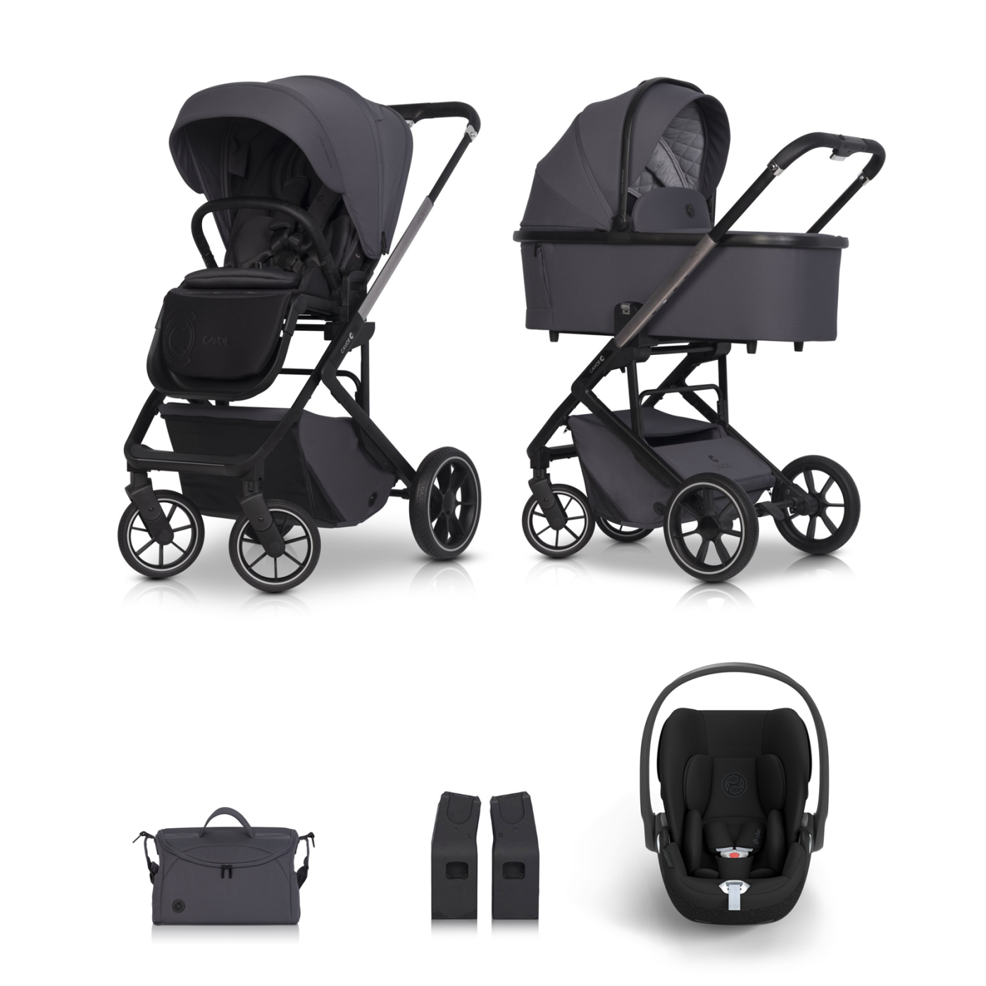Премиум промоционален пакет Cavoe MOI+ количка, спортна кошница, аксесоари и столче за кола Cybex GOLD Cloud G Plus, Iron