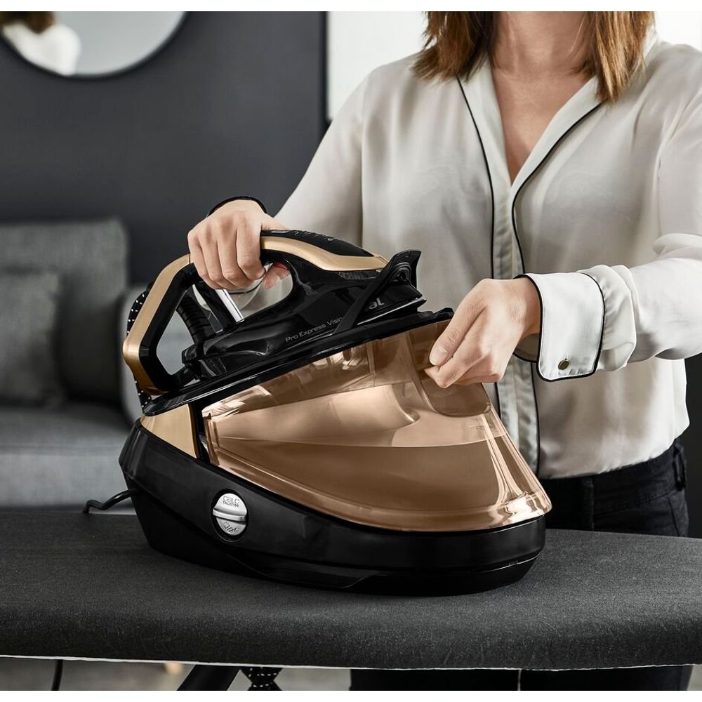 Гладачна станция Tefal Pro Express Vision GV9820E0, 3000W, Smart LED Vision, гладеща повърхност Durilium Airglide Autoclean, черно/златист цвят